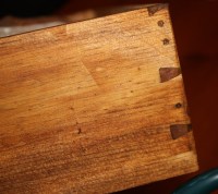 Since I’ve started making furniture and learning about joinery, I’ve been looking at all the furniture in the house to see how things are put together. Laura has a piece that she brought with her that her family acquired as part of the purchase of their Walpole Island,Ontario cabin. The origin the cabinet is unknown. Here’s what I found: