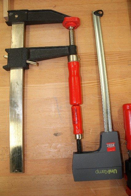 - The Uniclamps have small handles compared to the F style. I’ll be using these later tomorrow to put together my cabinet door, so we’ll see if this is a problem.