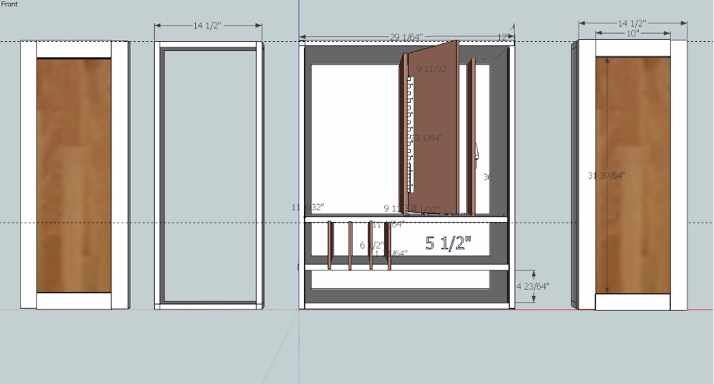 I’m still working on the tool cabinet sketch up. After discovering that my slanted platform wasn’t going to work, I started redesigning.