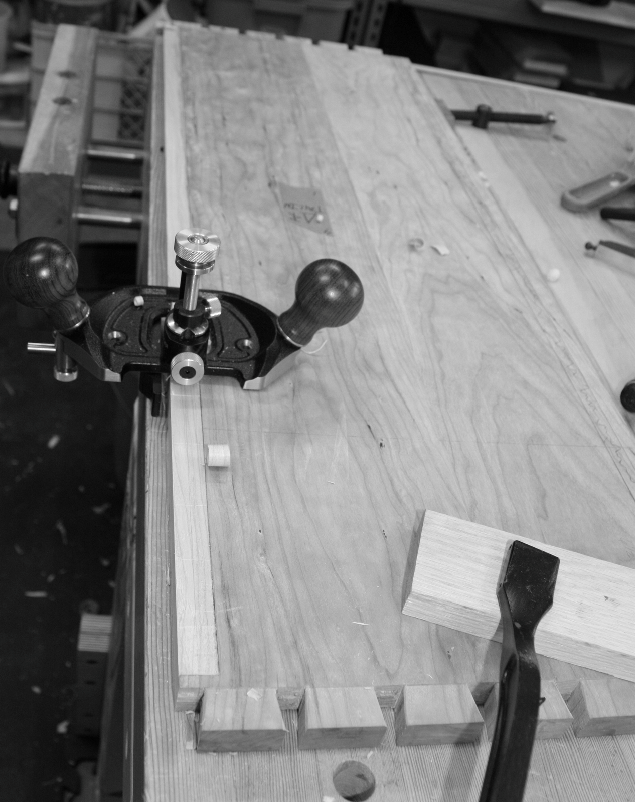 The router plane sure makes some fun shavings when you set it correctly.  Now that the mortises for the door are in I know where the front of the dados for the shelves need to go.