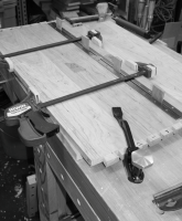 Originally I glued up the side pieces with the door width included.  This made sure both the doors and case were squared together and the gain matched.  After carefully squaring the back edges up, I trimmed off the door pieces. So now I have put the door pieces back on using the hinges.