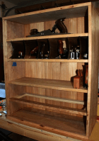 So obviously I still need to make the doors .. and the drawers, but here’s a sneak peak at the cabinet.  I added some tools for perspective.  The lower 2 slots will have drawers.  The shelf above the drawer slots is for miscellaneous tools.