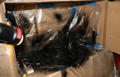 Here’s my spray booth ( aka microwave oven box that was used to mail the box and saw to me):