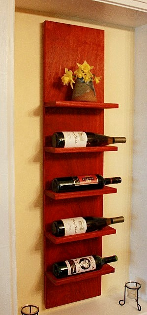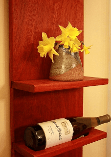 3. Marilyn,Padauk is one of my favourite exotic woods. I turned a pen using padauk a number of years ago and it has taken on a beautiful patina and is now a deep, rich red.I like the idea behind the design. I'd like to experiment with it and see how far I can get the wine bottle to sit BELOW the shelf. Wine bottles are the same diameter for the most part, aren't they?Chris