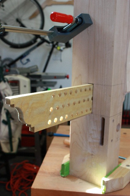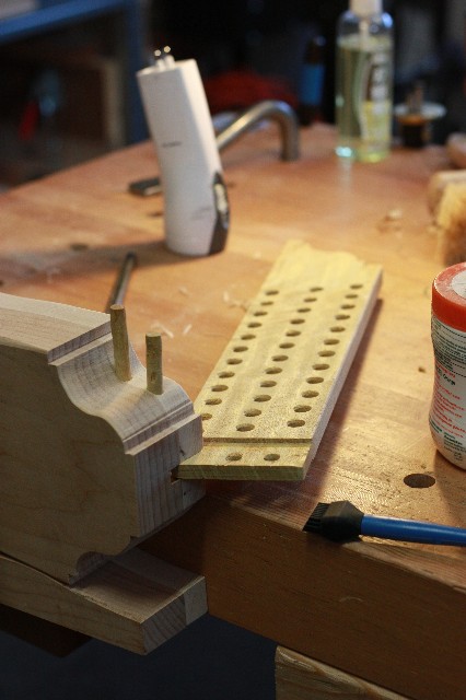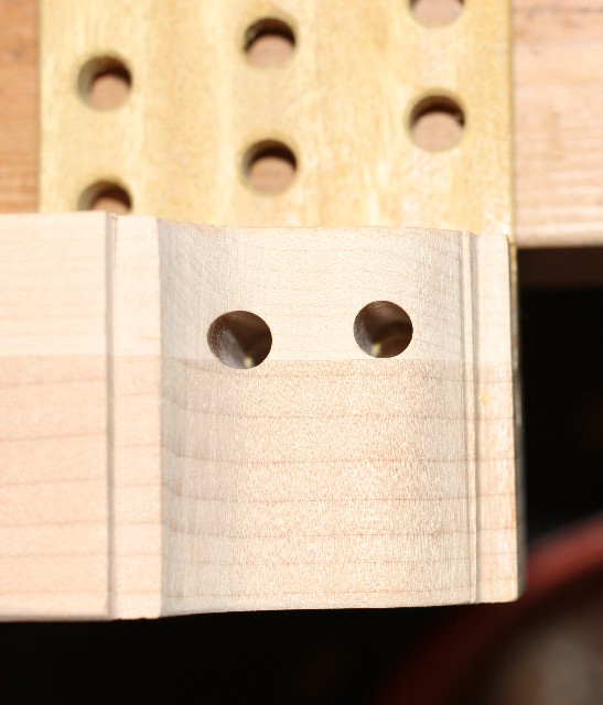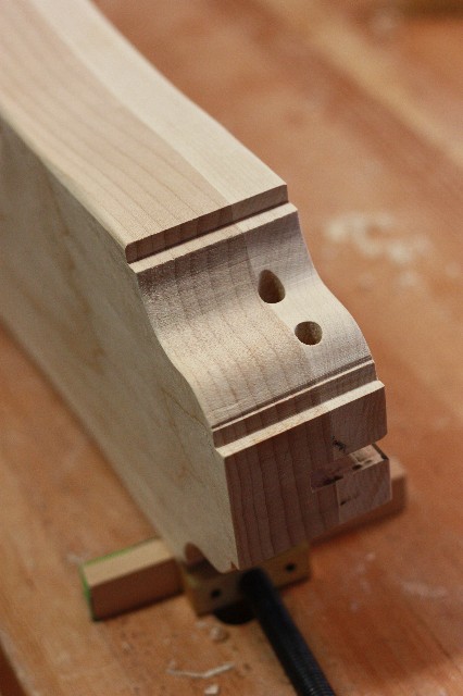 I started out by drilling the holes for the draw bore pegs in the bottom of the chop.