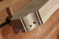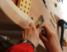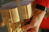 After pounding the peg material through the dowel plate to make pegs, I whittle the ends so that they will make the cruve.