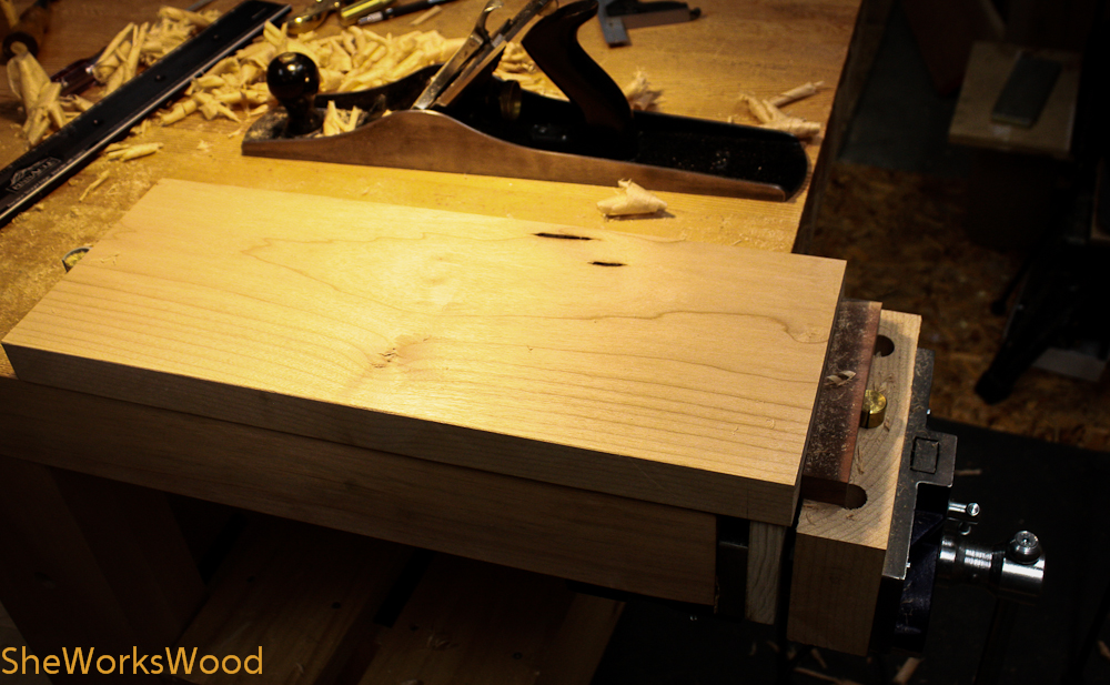 I needed to flatten my new deadman so that means I get to try out my new bench vise. I never had a good set up for holding a piece of wood while I planed across the board. Now I do and it worked fabulously.