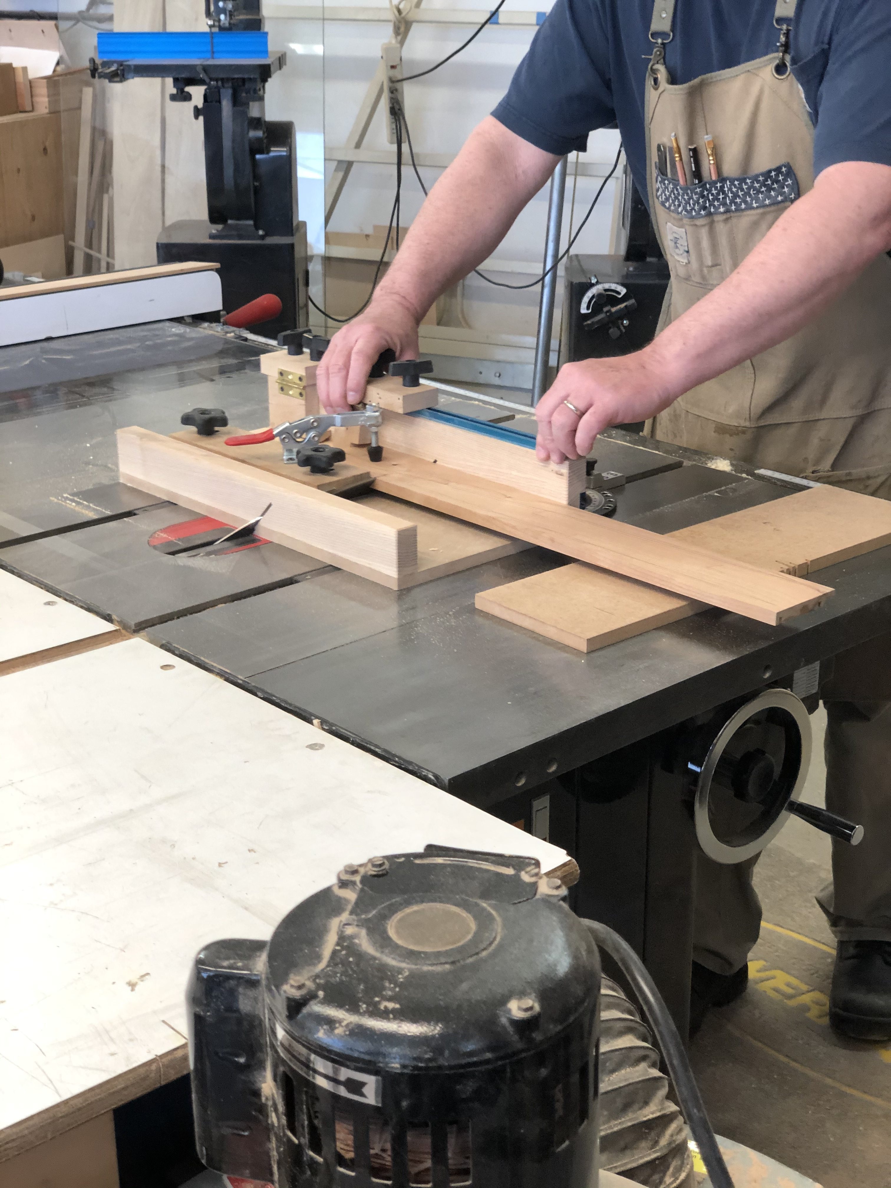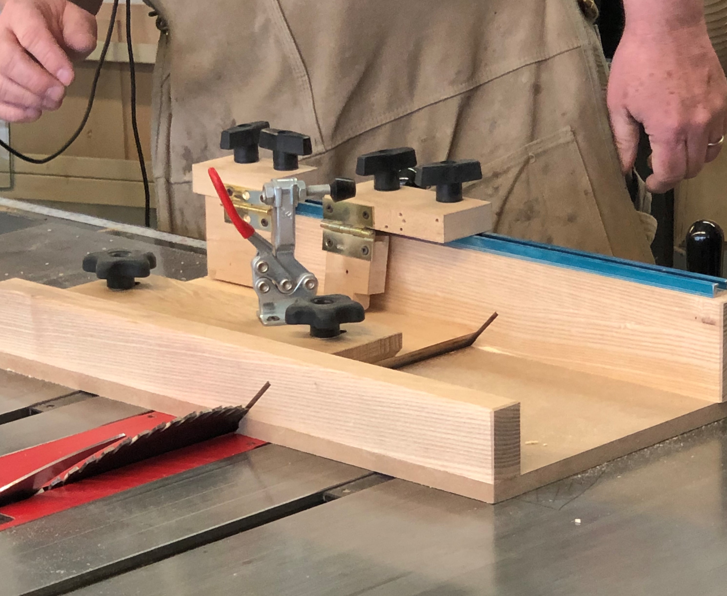 Then we used Mike’s clever jig shown here to cut the miters on the box sides.
