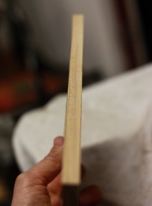 Step 1: Using a shim the same size as the tenon plus the blade width, I cut the cheeks of the tenon to the lay out line.