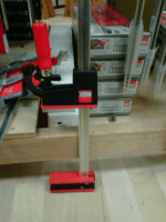 So I did a little mini product test while in the store. Almost all my clamps are Bessy clamps and one of the things that has given me troubles in the past is holding the jaws apart when the clamp is standing on its head. Now, I wax my clamps to prevent glue from sticking to them, so that probably doesn’t help.
