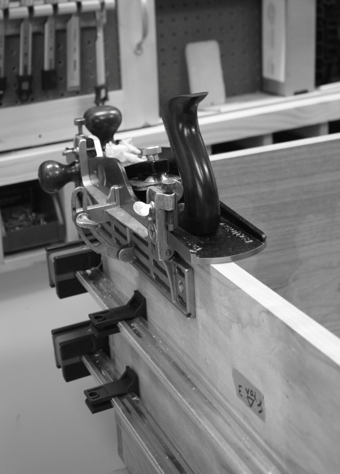 I got the chance to add my shelves into the bottom of the workbench. The solid wood maple shelf pieces will sit on the ledger strips that I installed earlier. Each shelf piece has a rabbet on opposite side edges so that the pieces fit into one another.