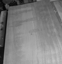 I’ve also been checking the surface by spreading mineral spirits on it to see how it will finish and remove any problem areas.
