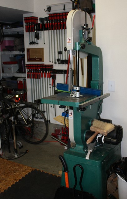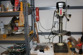 Here’s a few pictures of my shop which is and attached garage. I share the space with bikes, bar-b-q, lawn mower and other yard tools. I laid some DRIcore to make standing on the concrete floor a bit easier. When we build the garage in 2009, we insulated the walls and the door to keep it nice and cozy.