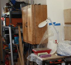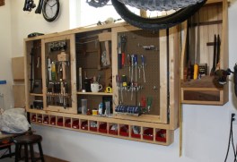 My tool cabinets are on the same side of the garage. The sliding door tool cabinet is mostly for power tools and other odds and ends. Next to it is my saw till. The double door tool cabinet houses my hand tools.