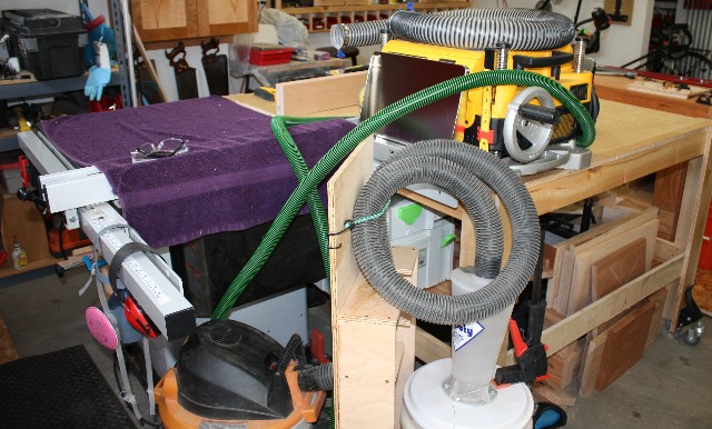 My table saw, roll around vacuum and planer are on the other side of my assembly table.