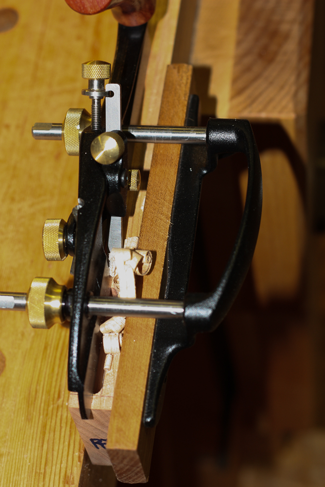 I used a Paul Seller’s work holding method and a Rockler clamp to hold the board while I plowed the groove. I was pretty happy with how well it worked. I clamped the edges of the piece in the clamp and then clamped the clamp in my vise.